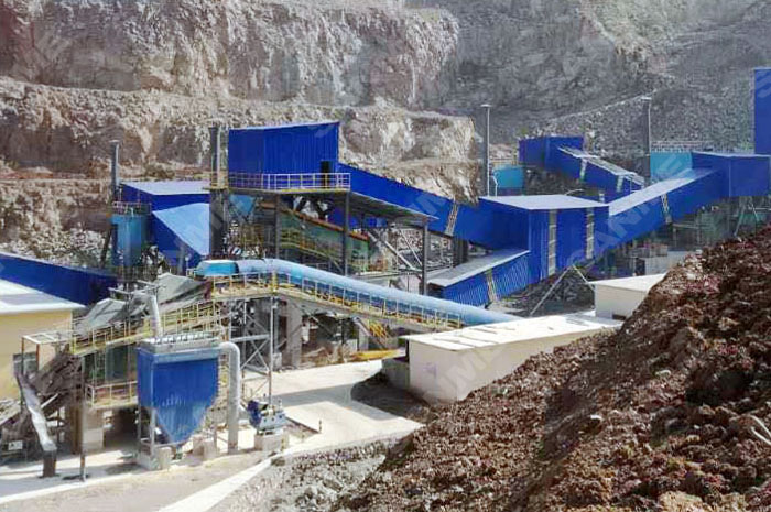 設(shè)備配置:給料機(jī)、振動篩、顎破、反擊破、皮帶輸...