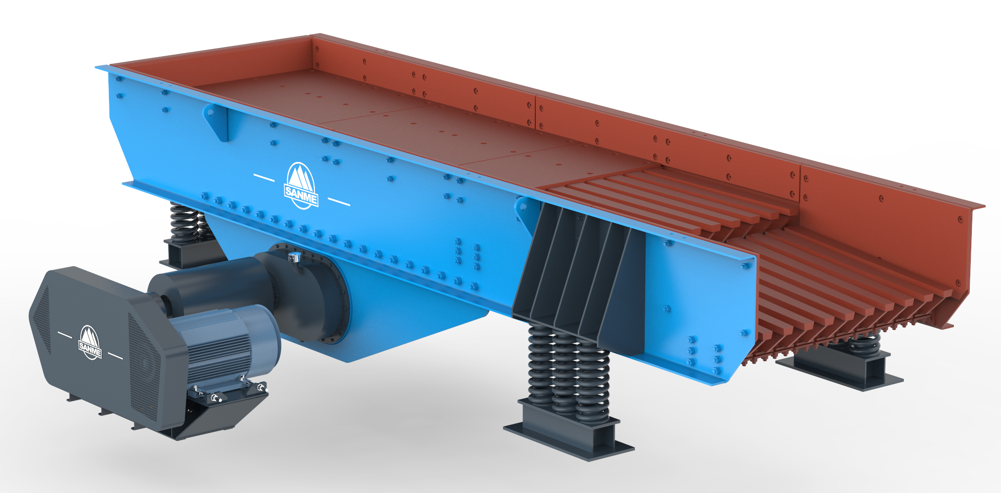 振動給料機又叫喂料機,是礦山破碎生產(chǎn)線中必要的輔助性設(shè)備,其主要作用是為破碎設(shè)備進行破碎物料填充工作,它能均勻、有規(guī)律、連續(xù)地將塊狀、顆粒狀物料從料倉中給料至受料裝置,連續(xù)、均勻地給砂石生產(chǎn)線中的破碎機械供料,并對物料進行粗篩。